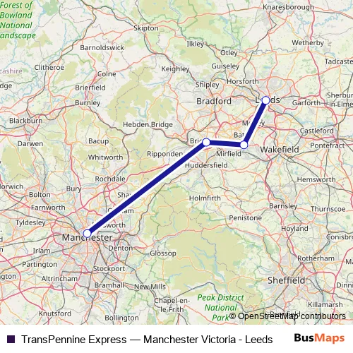 See why over 2 million users trust and consider busmaps.com as the best public transport website. busmaps gives you Leeds Rail Services suggested routes, real-time bus tracker, line route maps in Leeds, and helps to find the closest TransPennine Express rail stops near you. No internet available? Download an offline PDF map and bus schedule for the TransPennine Express rail to take on your trip.