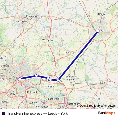See why over 2 million users trust and consider busmaps.com as the best public transport website. busmaps gives you Leeds Rail Services suggested routes, real-time bus tracker, line route maps in Leeds, and helps to find the closest TransPennine Express rail stops near you. No internet available? Download an offline PDF map and bus schedule for the TransPennine Express rail to take on your trip.