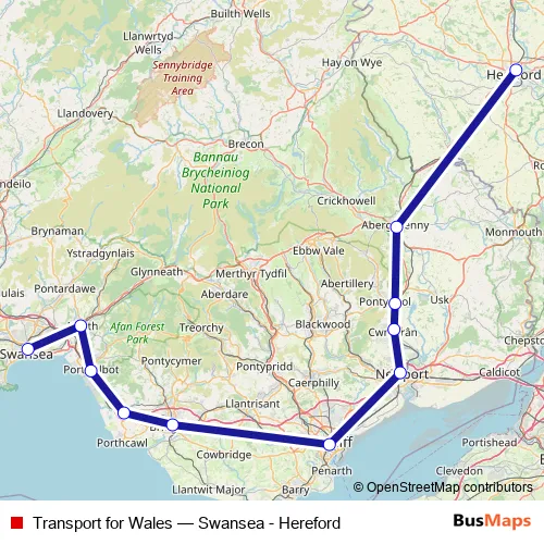 Click here to view the nearest Transport for Wales - Swansea - Hereford rail stop.