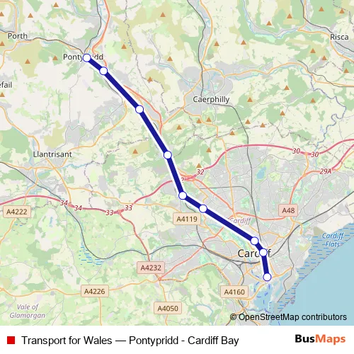 Additional information: Transport for Wales has 9 stops and the total trip duration for this route is approximately 32 minutes.