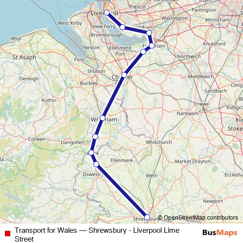 Click here to view the nearest Transport for Wales - Shrewsbury - Liverpool Lime Street rail stop.