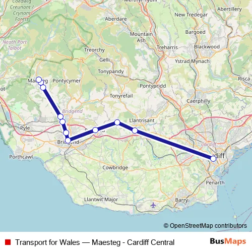 Click here to view the nearest Transport for Wales - Maesteg - Cardiff Central rail stop.