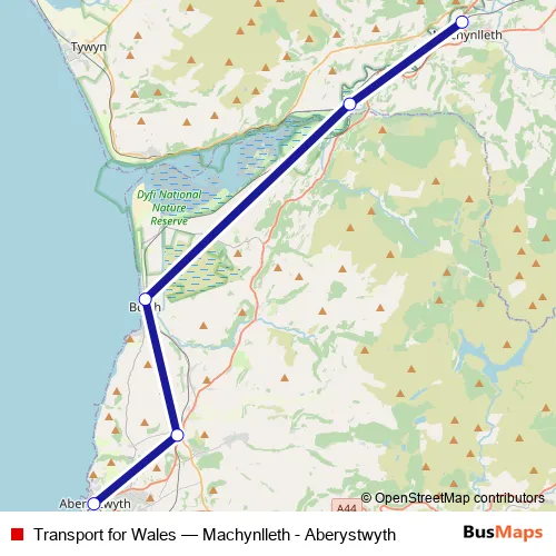 The first stop of the Transport for Wales rail route is Aberystwyth and the last stop is Machynlleth. Transport for Wales (Machynlleth - Aberystwyth) is operational during everyday.
