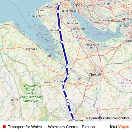 Click here to view the nearest Transport for Wales - Wrexham Central - Bidston rail stop.