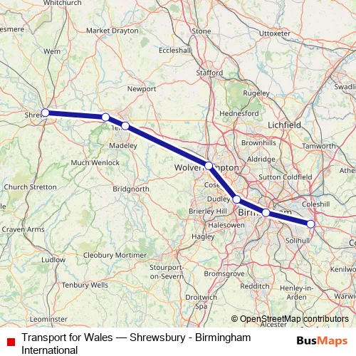Click here to view the nearest Transport for Wales - Shrewsbury - Birmingham International rail stop.