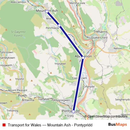 See why over 2 million users trust and consider busmaps.com as the best public transport website. busmaps gives you Abercynon Buses suggested routes, real-time bus tracker, line route maps in Abercynon, and helps to find the closest Transport for Wales bus stops near you. No internet available? Download an offline PDF map and bus schedule for the Transport for Wales bus to take on your trip.