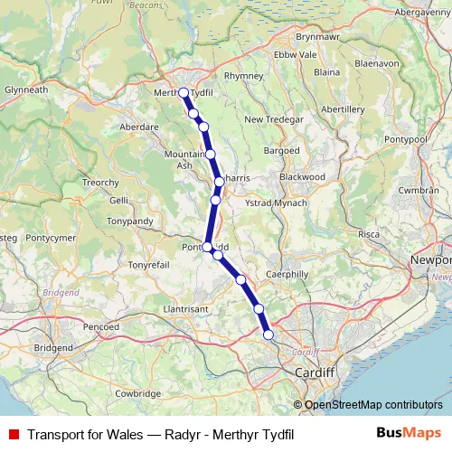 See why over 2 million users trust and consider busmaps.com as the best public transport website. busmaps gives you Merthyr Tydfil Buses suggested routes, real-time bus tracker, line route maps in Merthyr Tydfil, and helps to find the closest Transport for Wales bus stops near you. No internet available? Download an offline PDF map and bus schedule for the Transport for Wales bus to take on your trip.