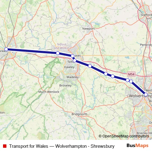 Bus Transport for Wales - Wolverhampton - Shrewsbury Schedule in Albrighton