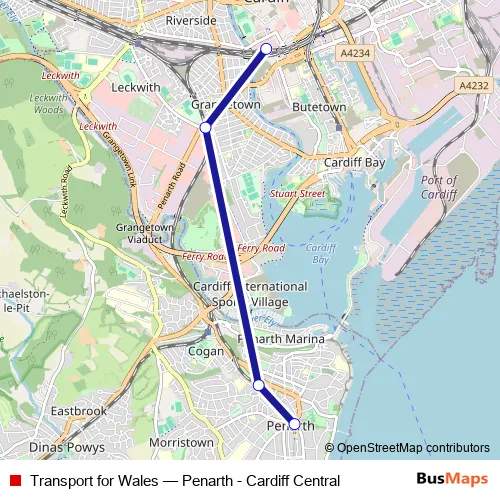 The first stop of the Transport for Wales bus route is Cardiff Central and the last stop is Penarth. Transport for Wales (Penarth - Cardiff Central) is operational during everyday.