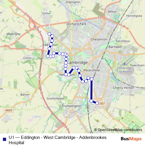 Bus U1 - Eddington - West Cambridge - Addenbrookes Hospital: Full Schedule in Cambridge