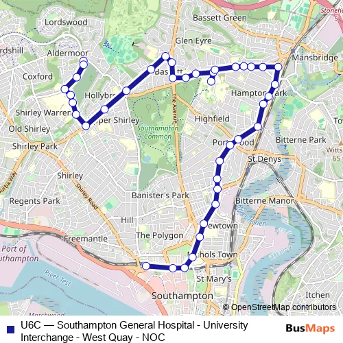 Click here to view the nearest U6C - Southampton General Hospital - University Interchange - West Quay - NOC bus stop.