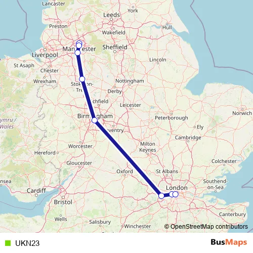 The first stop of the UKN23 bus route is Shudehill Interchange and the last stop is Victoria Coach Station. UKN23 is operational during everyday.