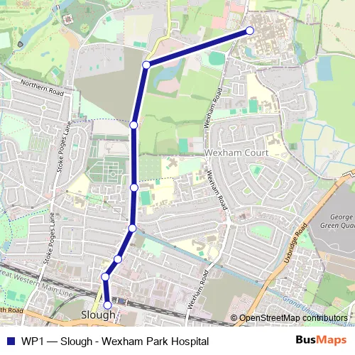 Click here to view the nearest WP1 - Slough - Wexham Park Hospital bus stop.