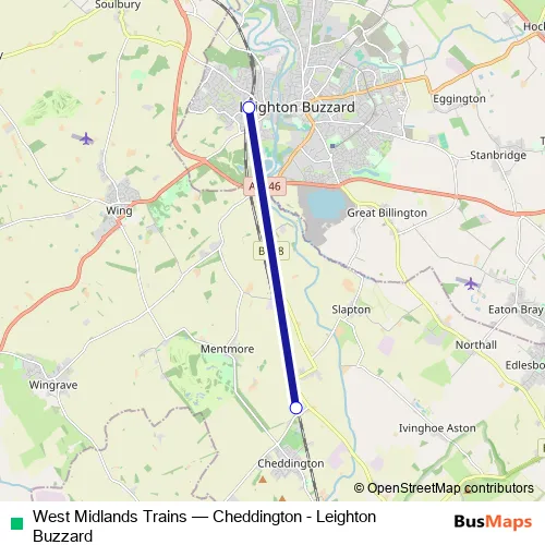 The first stop of the West Midlands Trains bus route is Leighton Buzzard and the last stop is Cheddington. West Midlands Trains (Cheddington - Leighton Buzzard) is operational during on weekends.