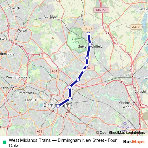 Click here to view the nearest West Midlands Trains - Birmingham New Street - Four Oaks bus stop.