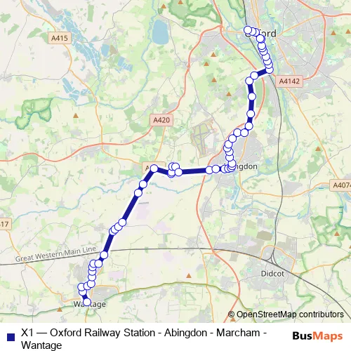 Bus X1 - Oxford Railway Station - Abingdon - Marcham - Wantage: Full Schedule in Oxford