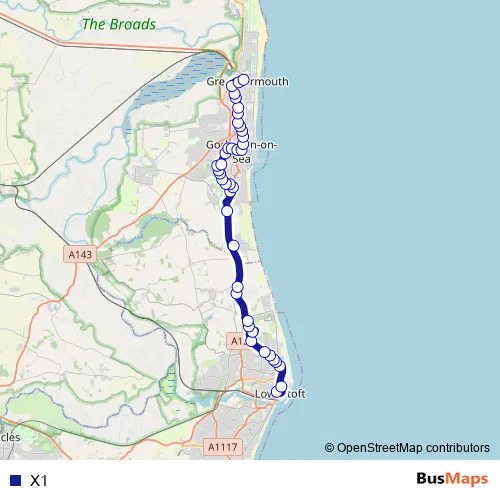 See why over 2 million users trust and consider busmaps.com as the best public transport website. busmaps gives you Gorleston-on-Sea Buses suggested routes, real-time bus tracker, line route maps in Gorleston-on-Sea, and helps to find the closest X1 bus stops near you. No internet available? Download an offline PDF map and bus schedule for the X1 bus to take on your trip.