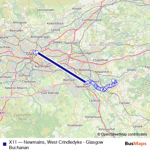 Click here to view the nearest X11 - Newmains, West Crindledyke - Glasgow Buchanan bus stop.