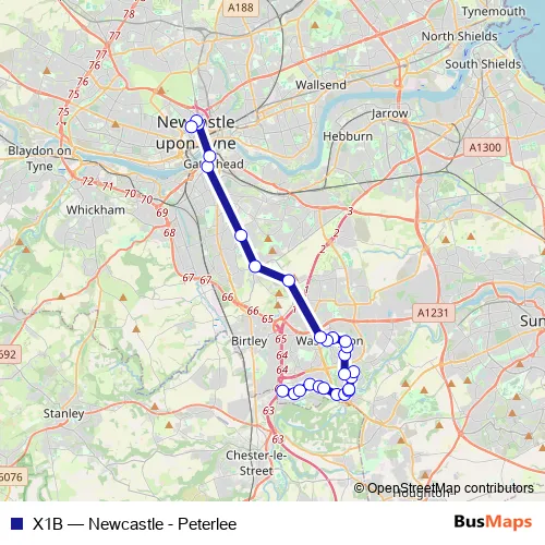 Click here to view the nearest X1B - Newcastle - Peterlee bus stop.