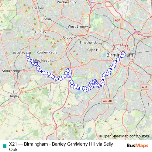 Bus X21 - Birmingham - Bartley Grn/Merry Hill via Selly Oak Schedule in Birmingham