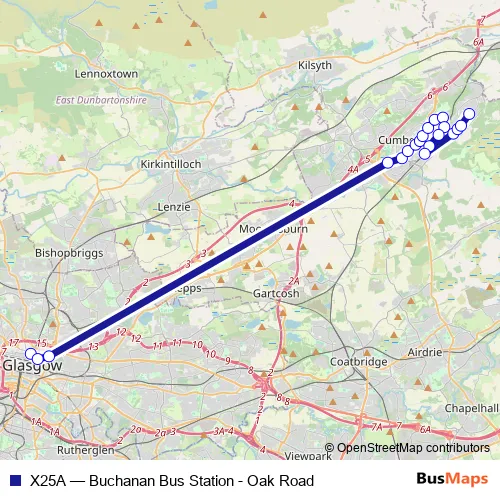 See why over 2 million users trust and consider busmaps.com as the best public transport website. busmaps gives you Kirkintilloch Buses suggested routes, real-time bus tracker, line route maps in Kirkintilloch, and helps to find the closest X25A bus stops near you. No internet available? Download an offline PDF map and bus schedule for the X25A bus to take on your trip.