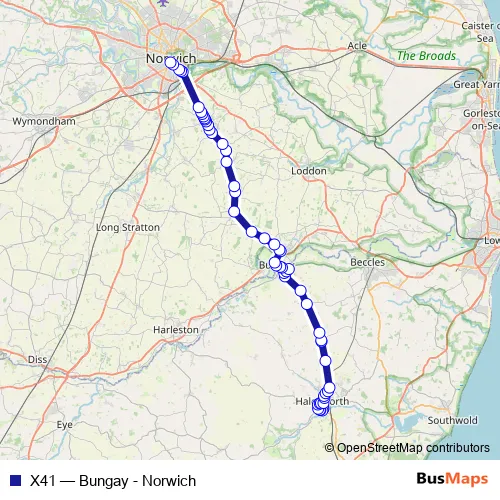 Bus X41 - Bungay - Norwich in Norwich: Stops & Timetable