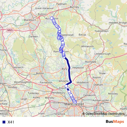 See why over 2 million users trust and consider busmaps.com as the best public transport website. busmaps gives you Bury Buses suggested routes, real-time bus tracker, line route maps in Bury, and helps to find the closest X41 bus stops near you. No internet available? Download an offline PDF map and bus schedule for the X41 bus to take on your trip.