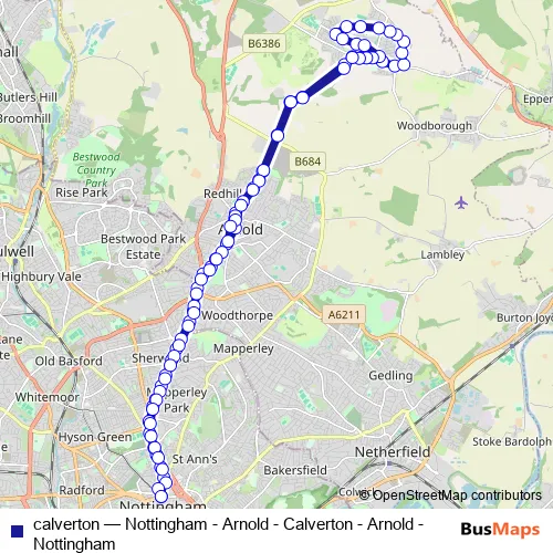 Bus calverton - Nottingham - Arnold - Calverton - Arnold - Nottingham in Nottingham: Stops & Timetable