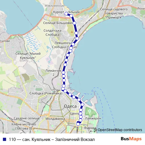 Bus 110 - сан. Куяльник – Залізничний Вокзал in Odesa: Stops & Timetable