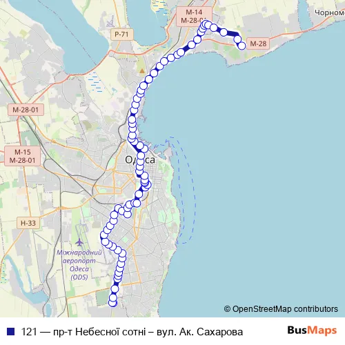 Bus 121 - пр-т Небесної сотні – вул. Ак. Сахарова in Odesa: Stops & Timetable