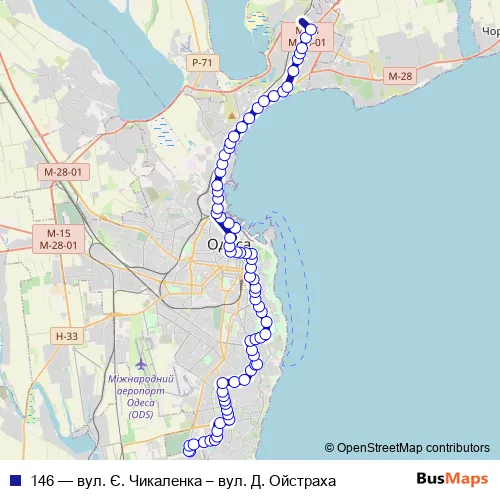 Bus 146 - вул. Є. Чикаленка – вул. Д. Ойстраха Schedule in Odesa
