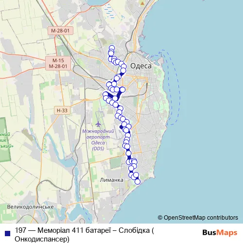 Bus 197 - Меморіал 411 батареї – Слобідка (Онкодиспансер): Full Schedule in Odesa