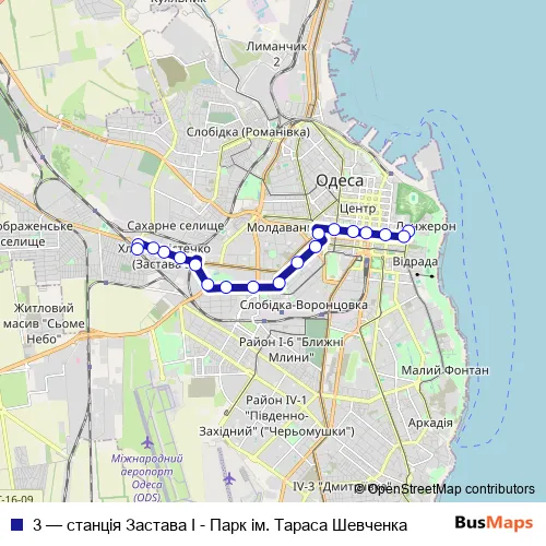 Trolleybus 3 - станція Застава I - Парк ім. Тараса Шевченка in Odesa: Stops & Timetable