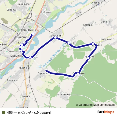 Click here to view the nearest 466 - м.Стрий - с.Ярушичі bus stop.