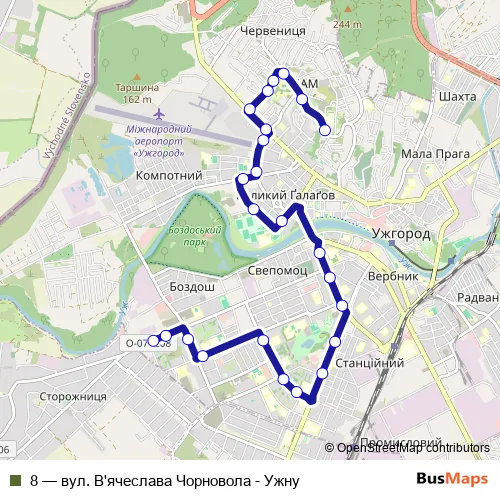 Bus 8 - вул. В'ячеслава Чорновола - Ужну: Full Schedule in Uzhhorod