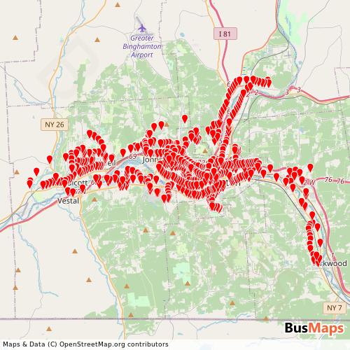 The centro GTFS feed by Broome-County-Transit provides structured public transit data for United States, covering 23 routes and 796 stops operated by 1 transit agencies. Formatted in the General Transit Feed Specification (GTFS) standard, this dataset is ready for integration with transit apps, routing engines, and urban planning tools.