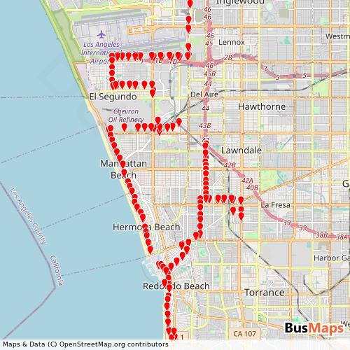 Beach Cities Transit, based in El Segundo, California, United States, offers a reliable and comprehensive network of public transport services, including Bus. Our platform provides detailed and up-to-date information on routes, schedules, stops, and arrivals for all services operated by Beach Cities Transit. Whether you're planning your daily commute or exploring the city, our tools help you find the nearest stop and the best route to your destination.
