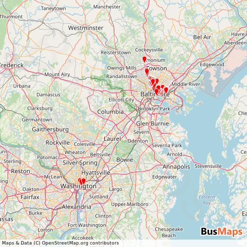 Johns Hopkins University Campus Shuttle operates in the following cities: Baltimore, Towson, Guilford, Washington.