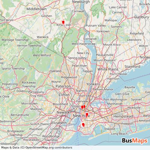 Monroe Bus Lines operates in the following cities: Kiryas Joel.