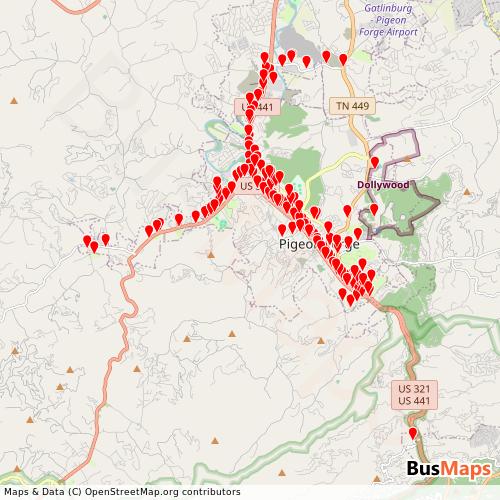 Pigeon Forge Mass Transit operates in the following cities: Sevierville, Pigeon Forge.