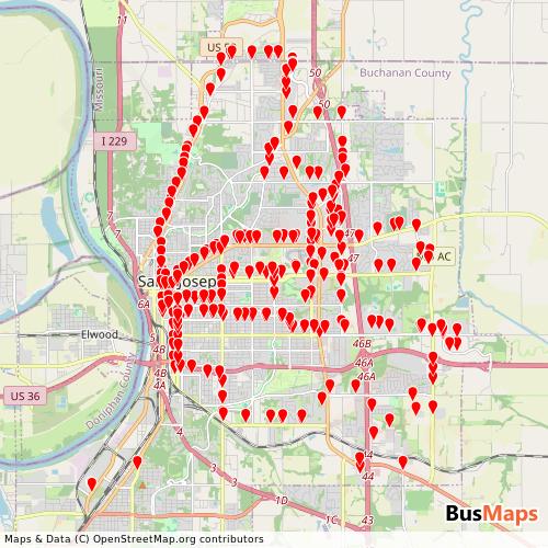 St Joseph Transit operates in the following cities: Saint Joseph.