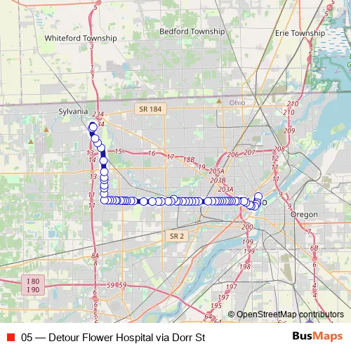 Click here to view the nearest 05 - Detour Flower Hospital via Dorr St bus stop.
