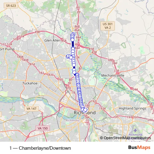Click here to view the nearest 1 - Chamberlayne/Downtown bus stop.
