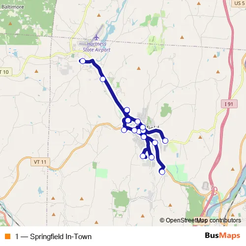 The first stop of the 1 bus route is Springfield Plaza and the last stop is People's Bank/Main St.. 1 (Springfield In-Town) is operational during on weekdays.