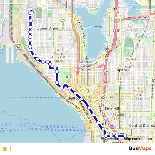 See why over 2 million users trust and consider busmaps.com as the best public transport website. busmaps gives you Seattle Buses suggested routes, real-time bus tracker, line route maps in Seattle, and helps to find the closest 1 bus stops near you. No internet available? Download an offline PDF map and bus schedule for the 1 bus to take on your trip.