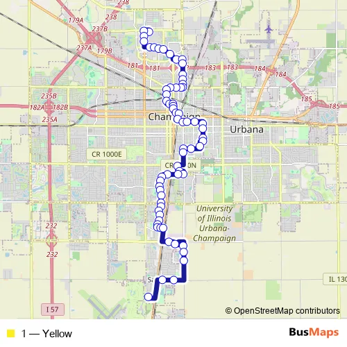 See why over 2 million users trust and consider busmaps.com as the best public transport website. busmaps gives you Urbana Buses suggested routes, real-time bus tracker, line route maps in Urbana, and helps to find the closest 1 bus stops near you. No internet available? Download an offline PDF map and bus schedule for the 1 bus to take on your trip.
