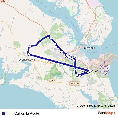 Bus 1 - California Route in Leonardtown: Stops & Timetable
