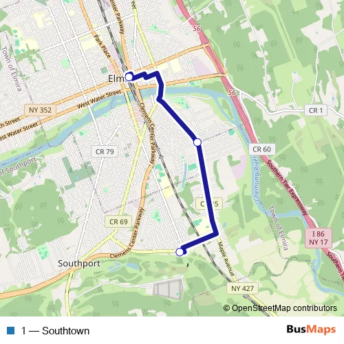 Bus 1 - Southtown in Elmira: Stops & Timetable
