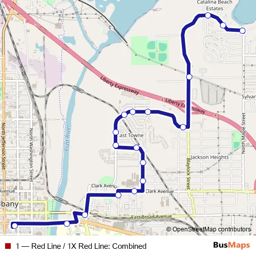 Bus 1 - Red Line / 1X Red Line: Combined Schedule in Albany