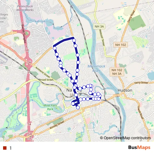 See why over 2 million users trust and consider busmaps.com as the best public transport website. busmaps gives you Nashua Buses suggested routes, real-time bus tracker, line route maps in Nashua, and helps to find the closest 1 bus stops near you. No internet available? Download an offline PDF map and bus schedule for the 1 bus to take on your trip.